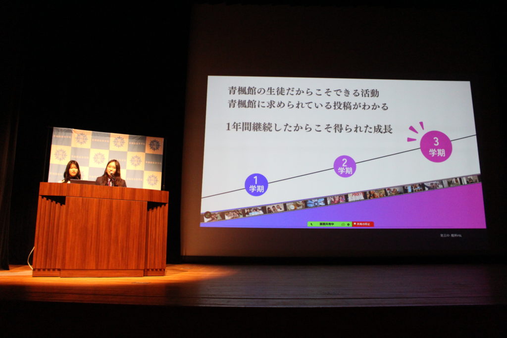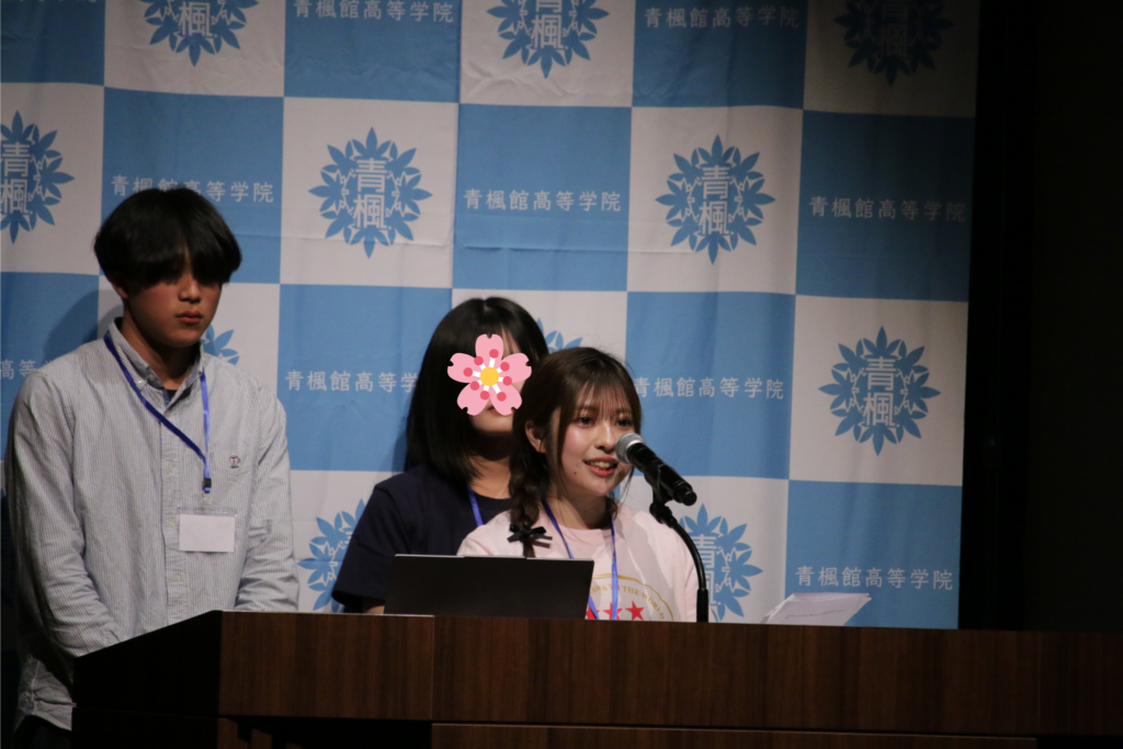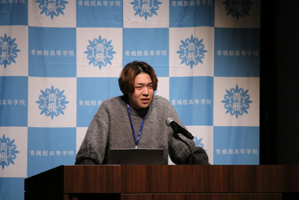 楓館高等学院が学期末に実施する成果報告会です。青楓館ではマイプロ活動やPBL活動を通して、生徒が主体的に社会とつながる力を養う教育に力を入れています。楓杯は、その学びの集大成として生徒の挑戦に光を当て、「挑戦への賞賛」を目的としたイベントで、当日は200人を超える方々にご参加いただきました。今回は個人部門に登壇した生徒たちの発表の様子をご紹介します。