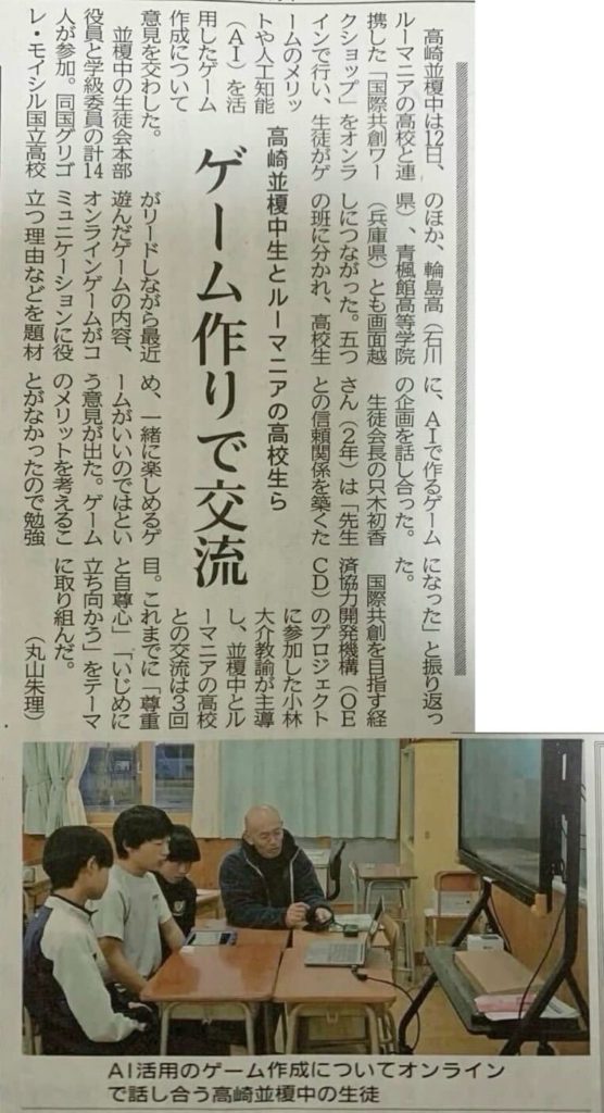 ルーマニアの高校生らとオンラインで交流する「国際共同プロジェクト学習」を取り上げていただきました。
