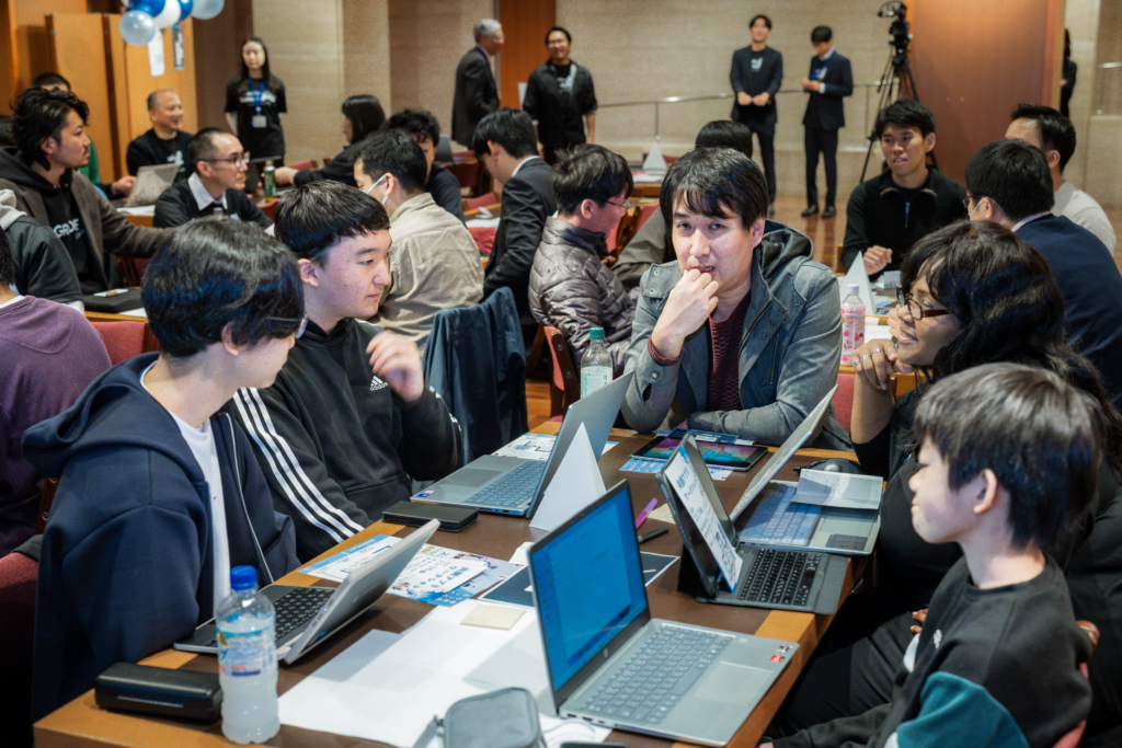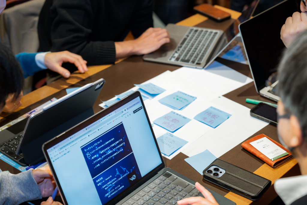 学生から社会人まで幅広い年齢層が各グループで混ざり合いチームを組み、「学校に登校するモチベが上がらない」といった具体的な課題に対し、AIを活用した解決策(例:「登校くん」アプリ)を共に議論しました。
